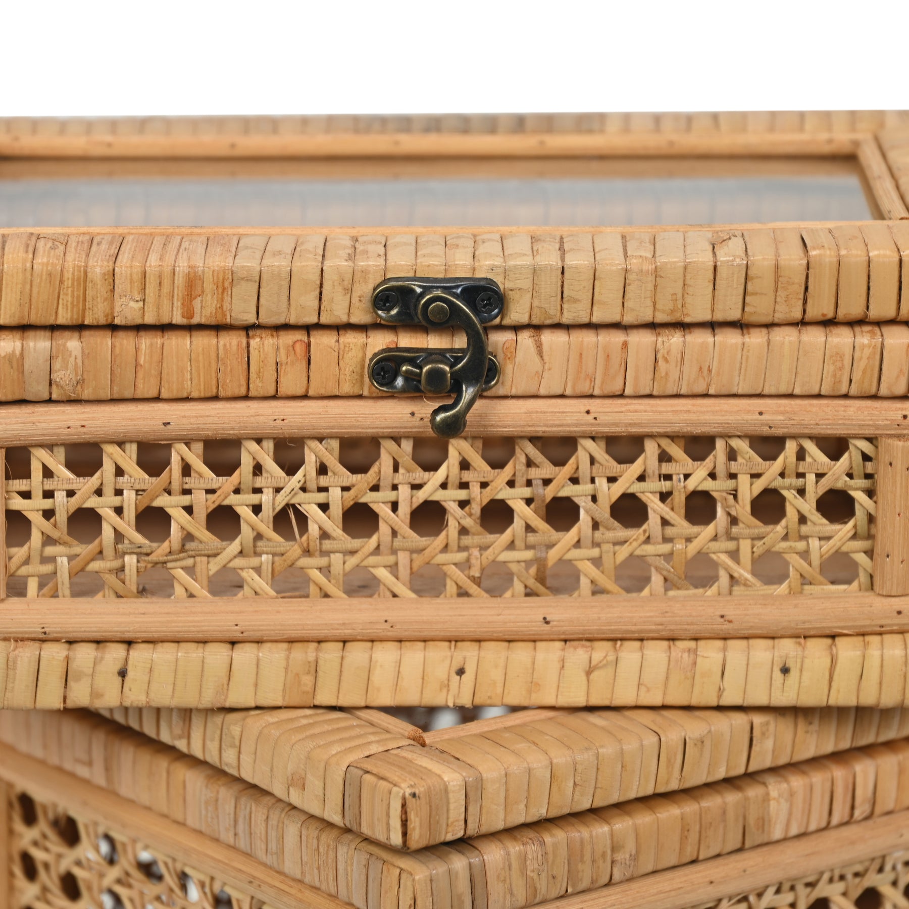 Rustic & Elegant Design: These wicker boxes combine woven rattan with glass panels, creating a modern, rustic charm that adds sophistication to any room.