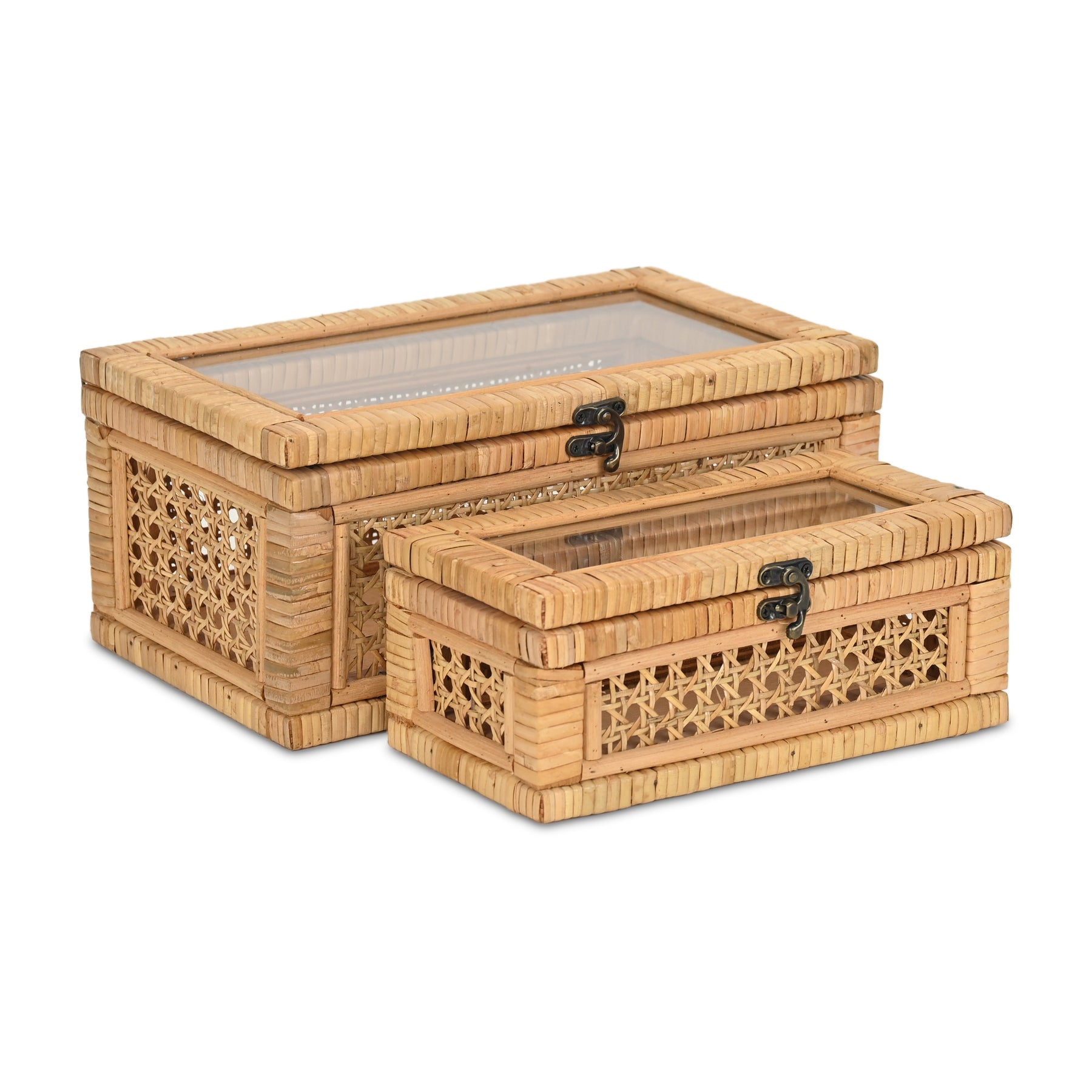 Brielle Set of 2 Rectangular Rattan & Glass Boxes